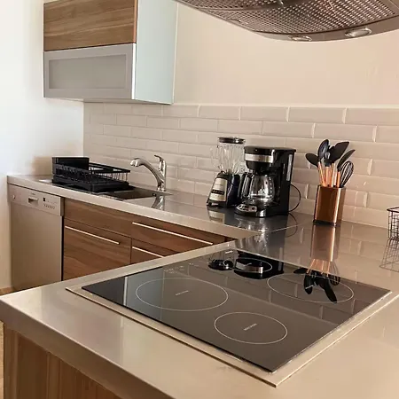 Yes, the apartment is furnished with a fully furnished kitchen and offers a microwave oven, coffee and tea making machines, and kitchenware as well. - ❓